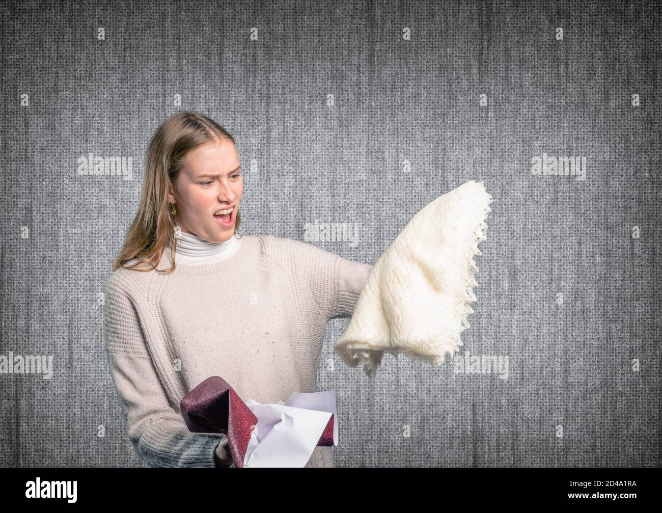 Una Mujer Esta Decepcionada Y Enojada Por Su Regalo Fotografia De Stock Alamy