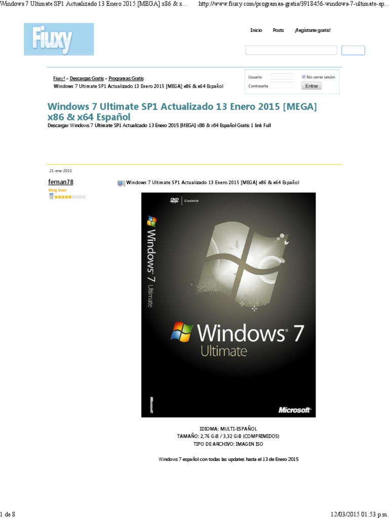 Windows 7 Ultimate Sp1 Actualizado 13 Enero 2015 Mega X86 X64 Espanol Descargar Gratis Windows 7 Microsoft Windows