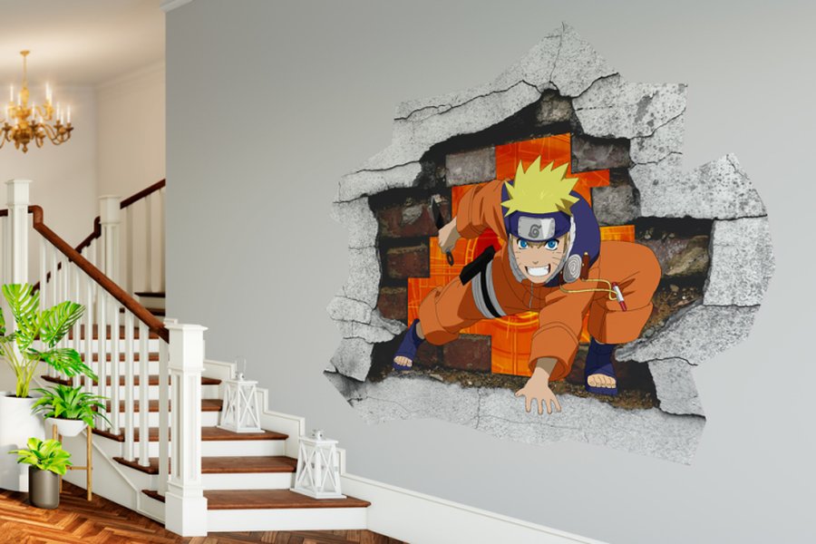 Adesivo 3d Buraco Na Parede Naruto Desenho Manga Geek Madeiramadeira