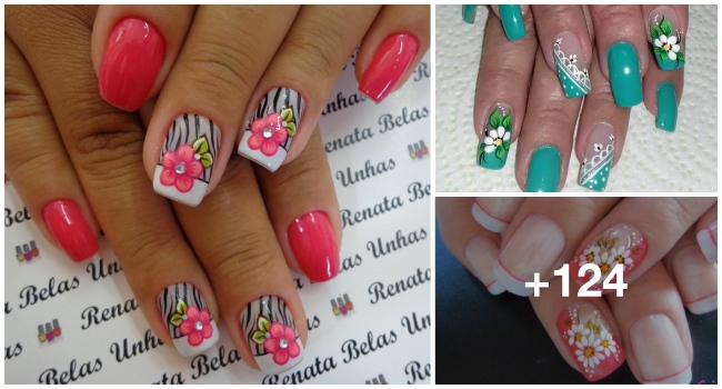 124 Unhas Artisticas Com Desenho De Pincel De Flores
