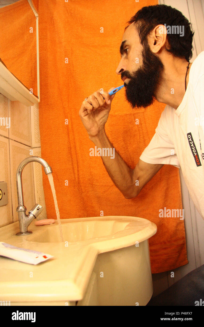 Sao Paulo Sp 15 07 2015 Pessoa Com Dentes Escova Torneira Aberta Imagem De Pessoa Com Un
