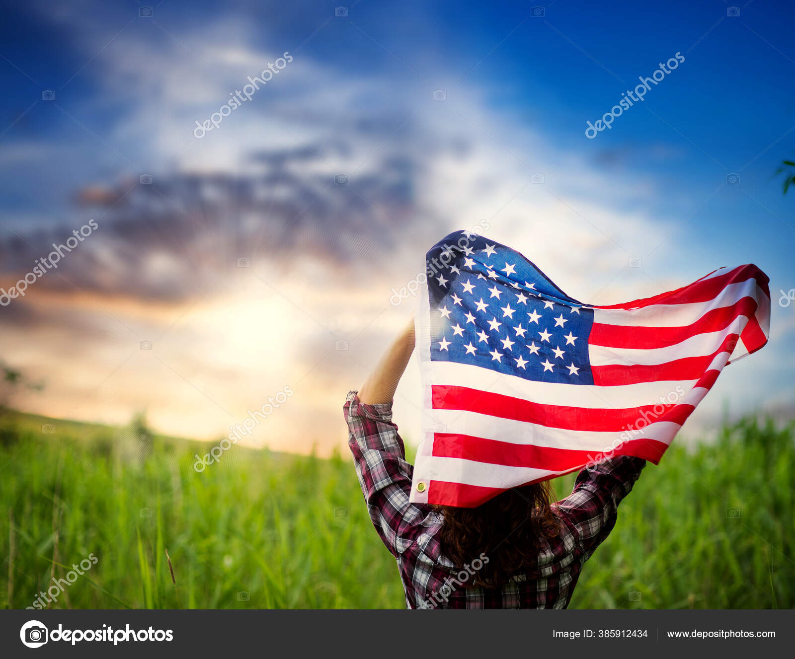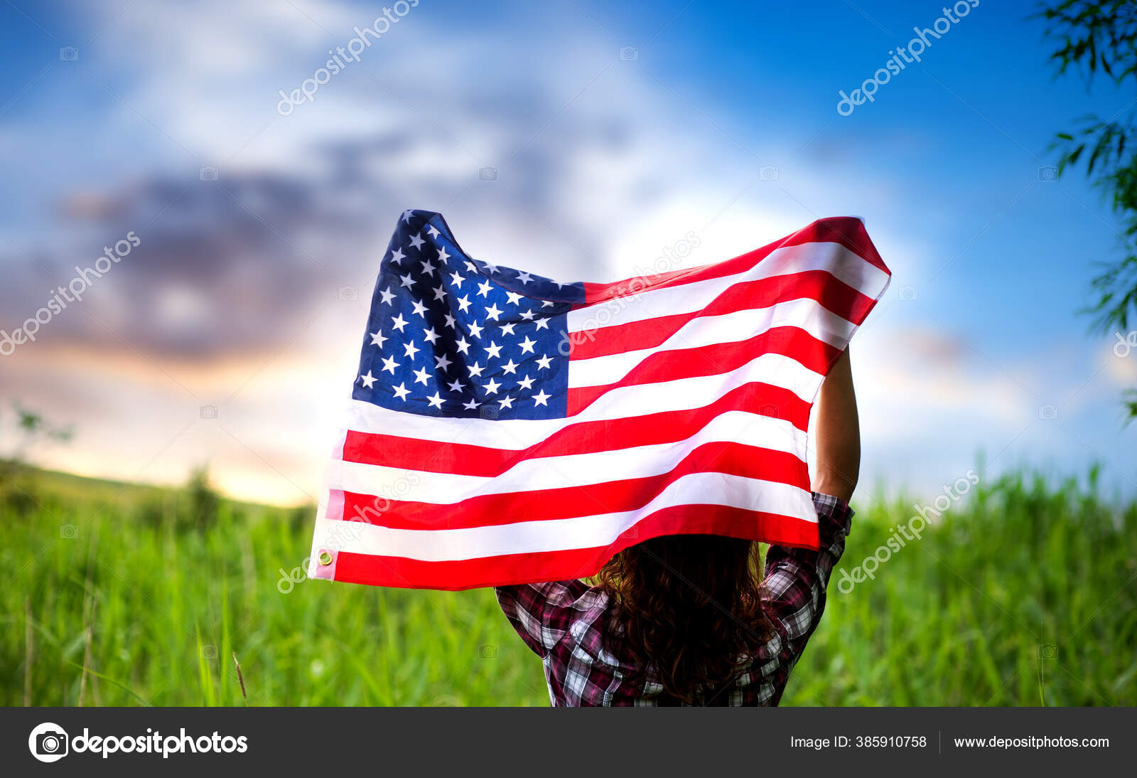 Mulher Segurando Dia Independencia Bandeira Dos Eua Stock Photo C Melis82 385912434