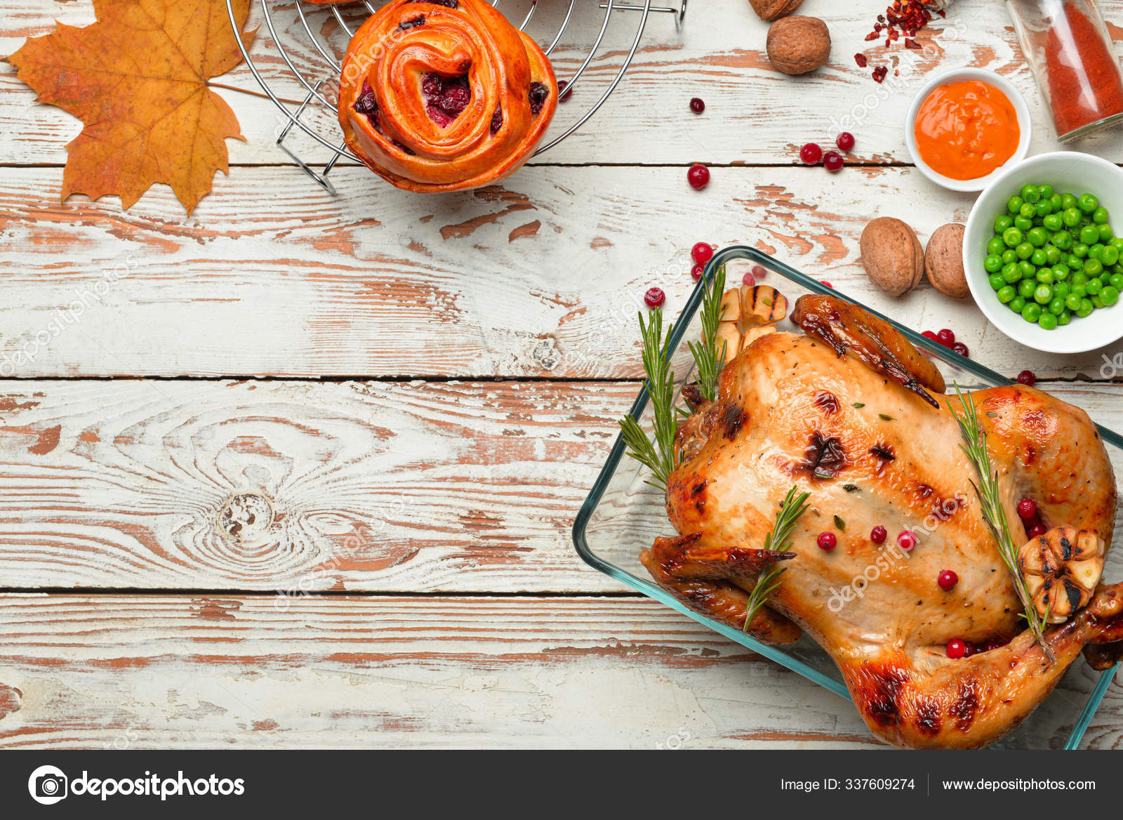 Peru Cozido No Forno Saboroso E Comida Diferente Para O Dia De Acao De Gracas Na Mesa Stock Photo C Serezniy 337609274