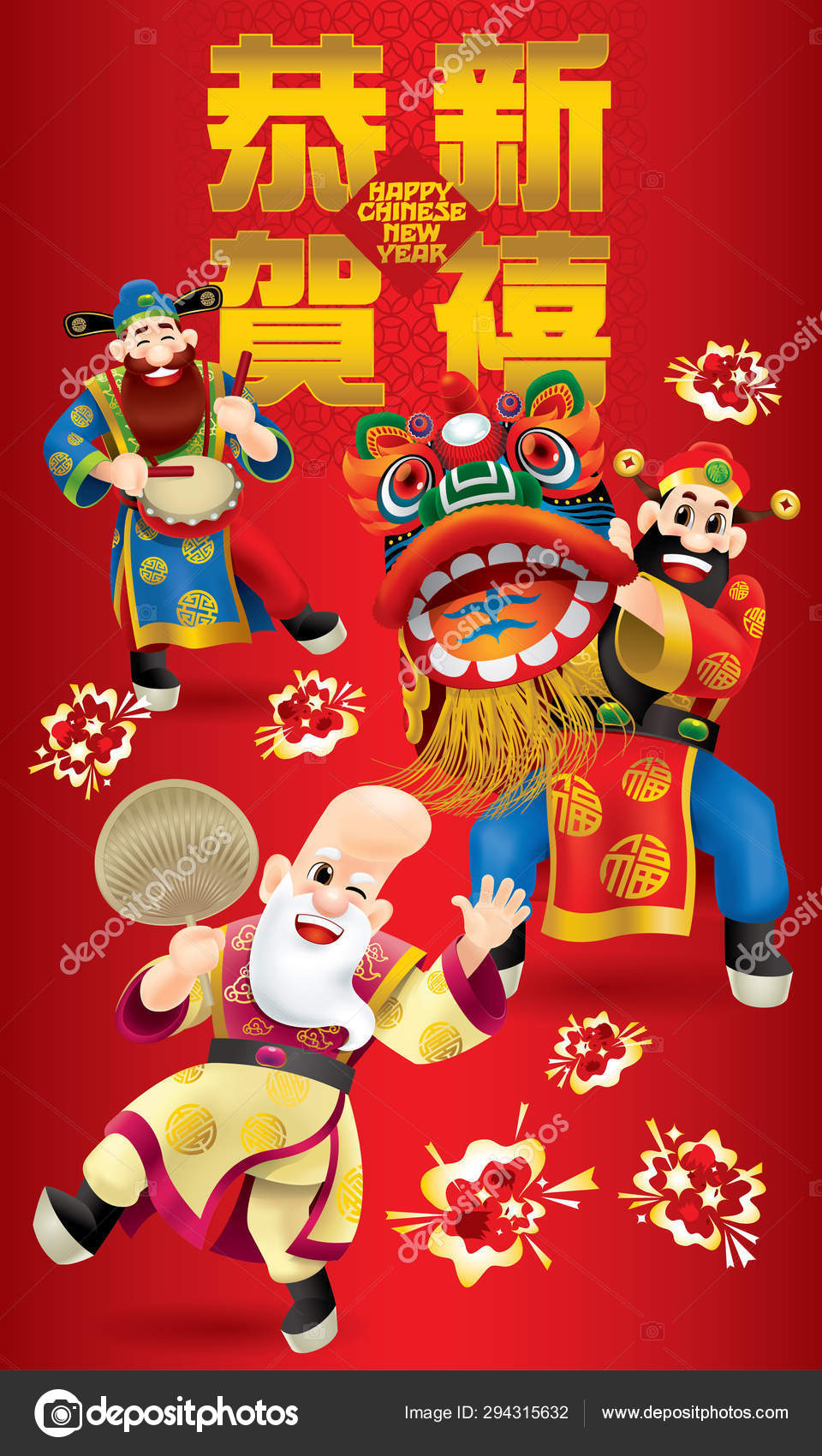 Ilustracion De Tres Dioses Chinos Lindos Estan Realizando Bailes Tradicionales De Leones Con Diferentes Postes Y Color Y Mas Vectores Libres De Derechos De Alegre Istock
