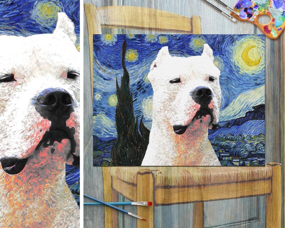 Dogo Argentino Arte Canvas Noche Estrellada Van Gogh Impresion Etsy