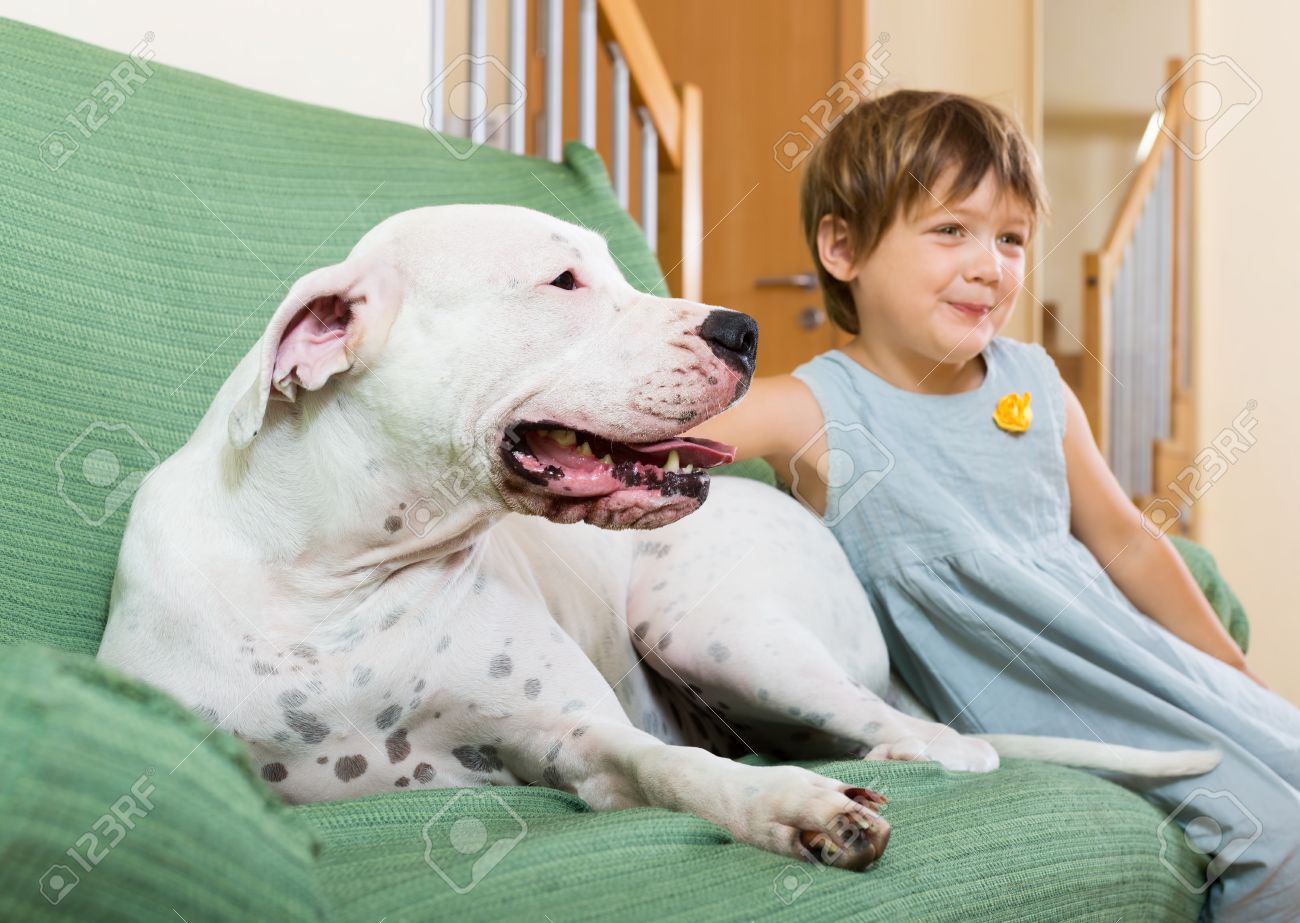 Nina En El Sofa Con Dogo Argentino Foco En Perro Fotos Retratos Imagenes Y Fotografia De Archivo Libres De Derecho Image 30283586