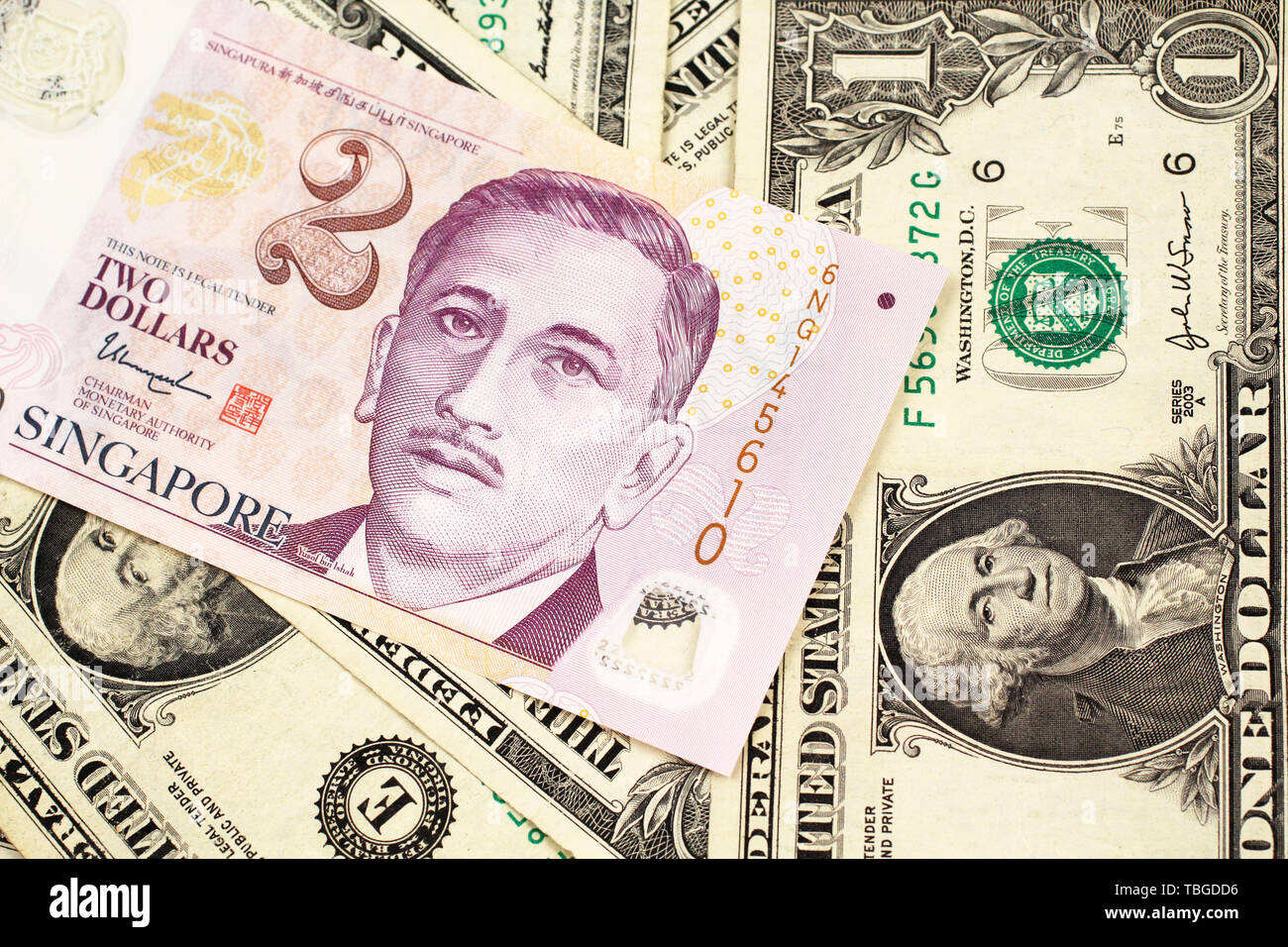 Una Imagen De Un Billete De Dolar De Singapur Cerrar En Macro Con Billetes De Dolar Americano Fotografia De Stock Alamy