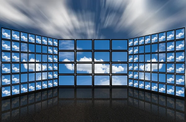 Televisao A Alta Definicao Moderna Com Imagem Do Ro Do Por Do Sol Foto De Stock Imagem De Moderna Alta 111158200