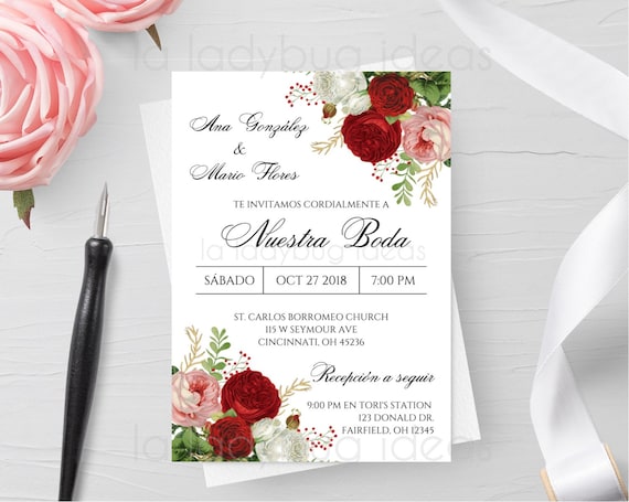 Invitacion Boda Para Editar Imprimir Color Tinto Invitaciones Etsy