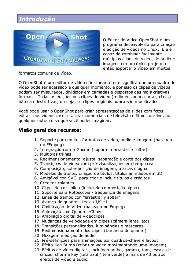 Utilizando O Openshot Do Linux Editor De Imagens E Musica