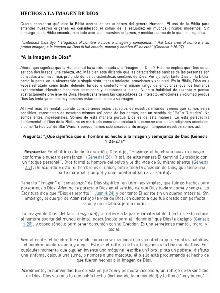 Pregunta Que Significa Que El Hombre Es Hecho A La Imagen Y