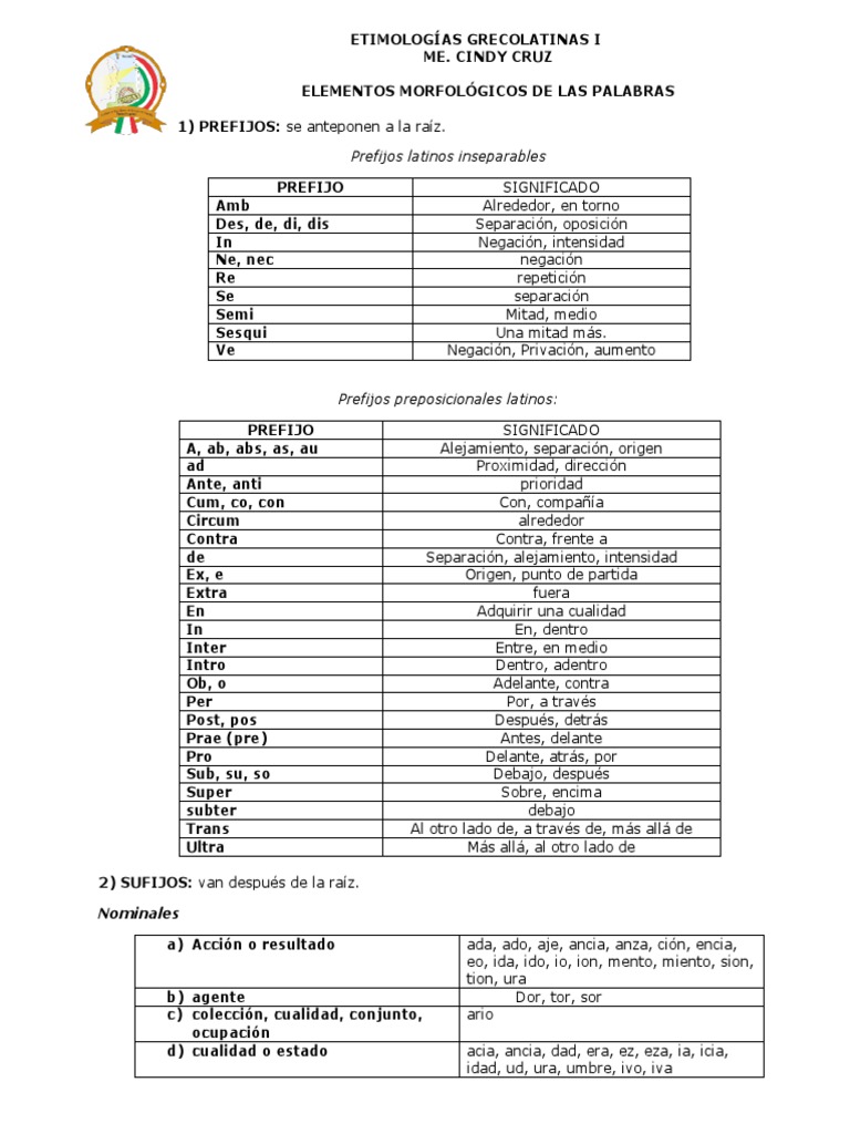 Etimologias Grecolatinas Cobay Santa Rosa Clasificacion De Las Palabras Segun Sus Elementos Morfologicos
