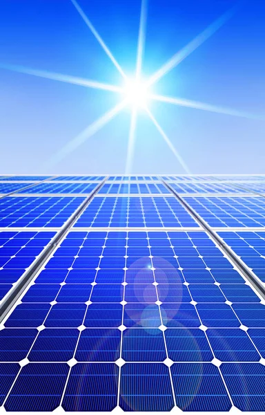 Painel Solar No Fundo Do Ceu Azul Foto De Banco De Imagens