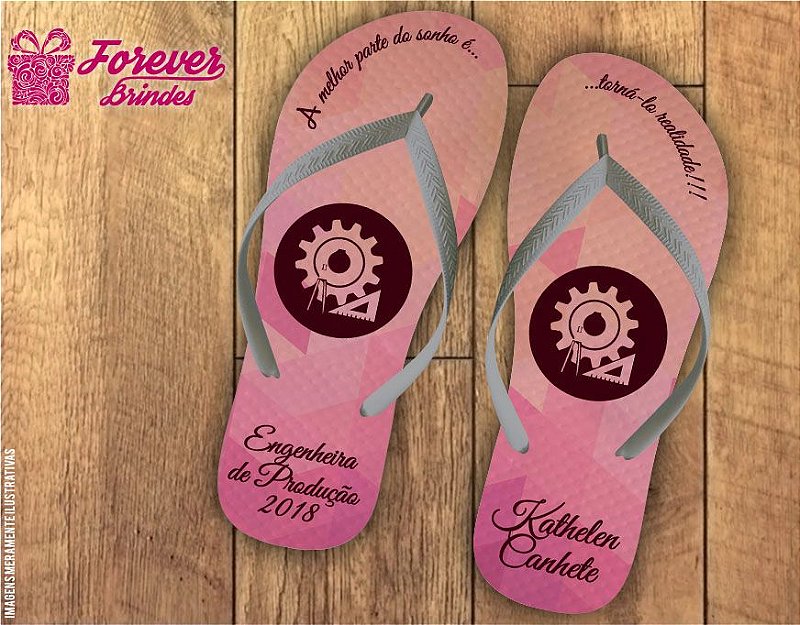 Chinelo Personalizado Engenharia De Producao Rosa Forever Brindes