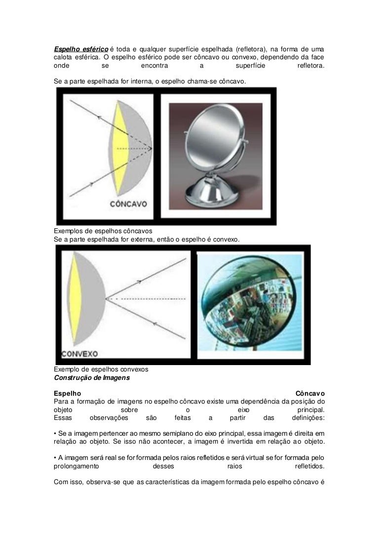 Formacao De Imagens Espelho Plano Convexo E Concavo Me Salva Resumos E Apostilas