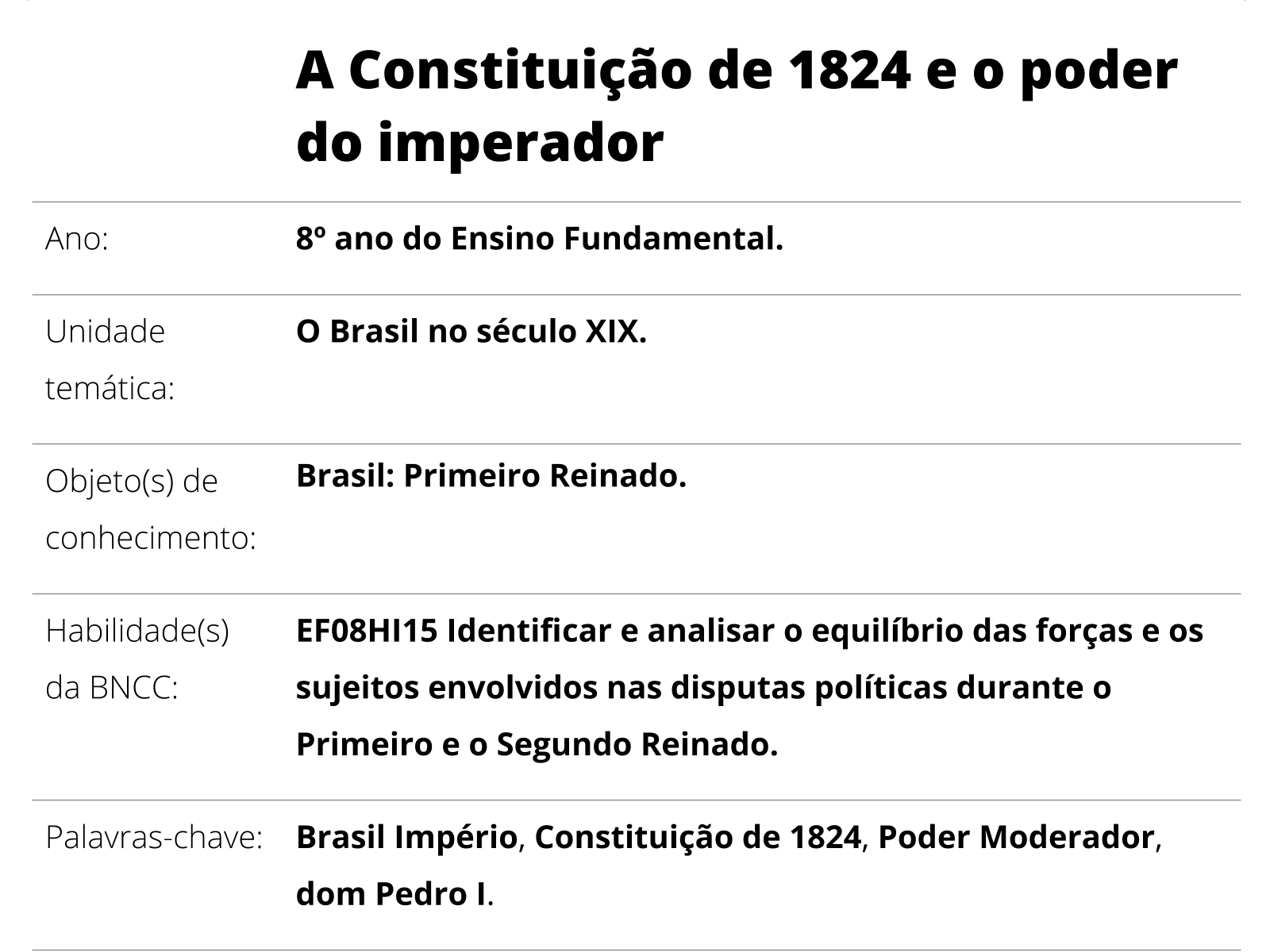 Plano De Aula 8º Ano Historia A Constituicao De 1824 E O Poder Do Imperador