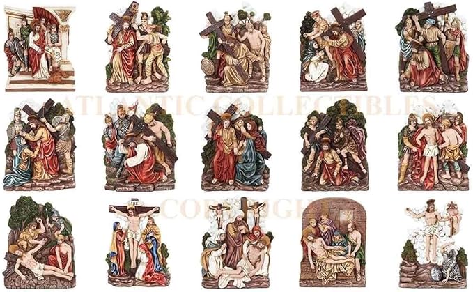 Atlantico Collectibles Iglesia Catolica 15 Estaciones De La Cruz La Via Crucis La Crucifixion De Jesus Religiosa Juego De Figuras Decorativas 9 25 H Amazon Es Hogar