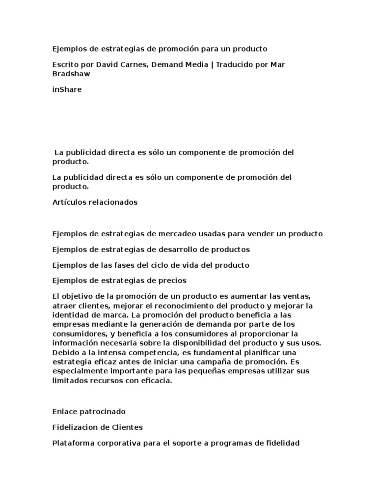 Ejemplos De Estrategias De Promocion Para Un Producto Producto Negocio Negocios