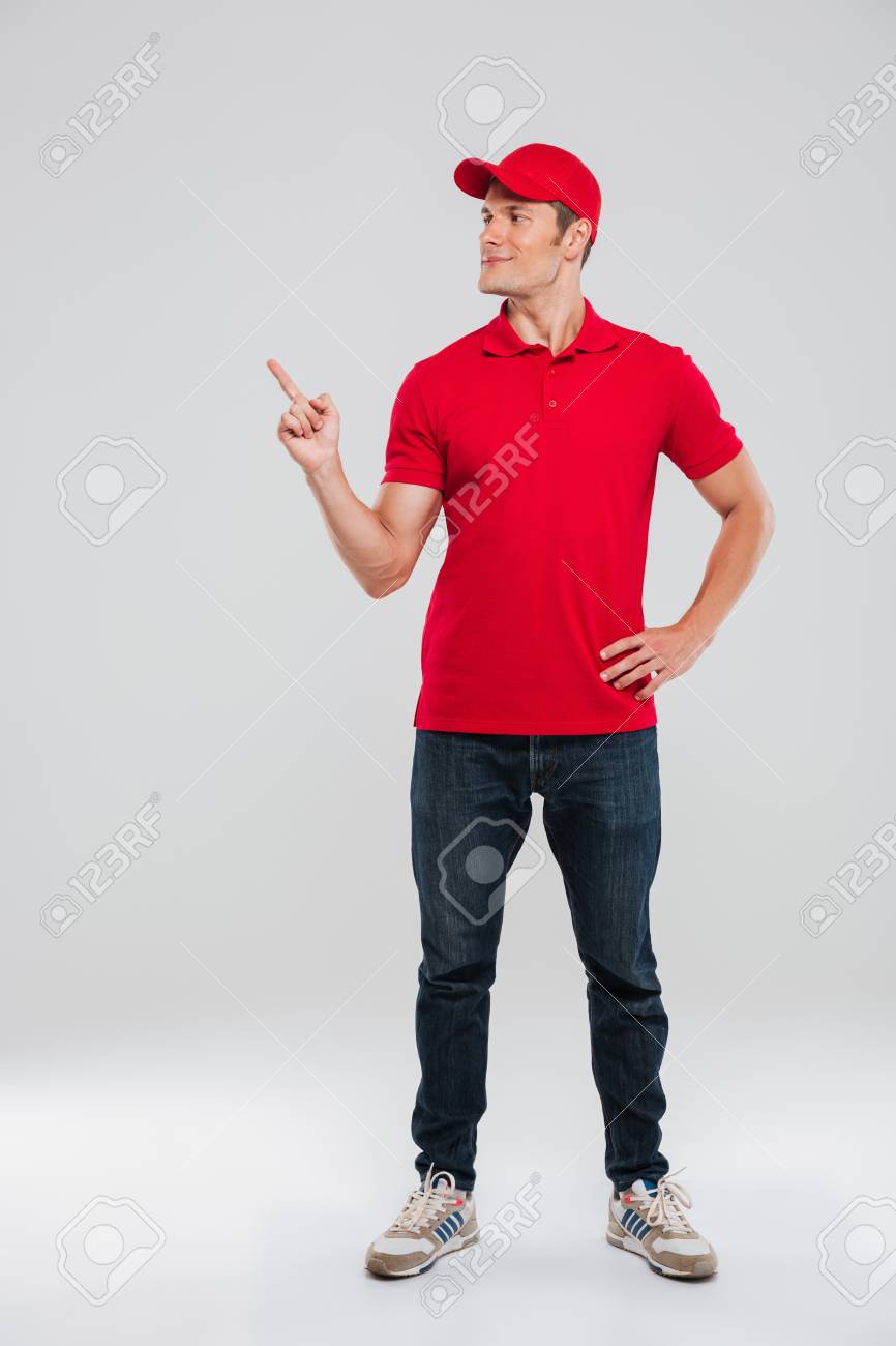 Imagens De Comprimento Total De Entregador Em Estudio Mostra Fora Um Braco Nos Quadris Fotos Retratos Imagenes Y Fotografia De Archivo Libres De Derecho Image 69171477