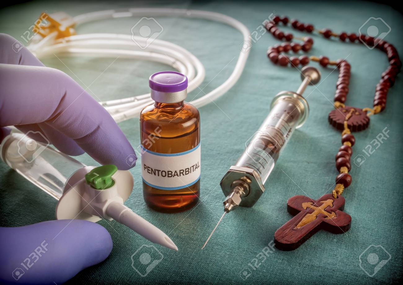 Frasco Con Pentobarbital Utilizado Para La Eutanasia Y La Inyeccion Letal En Un Hospital Imagen Conceptual Fotos Retratos Imagenes Y Fotografia De Archivo Libres De Derecho Image 90314130