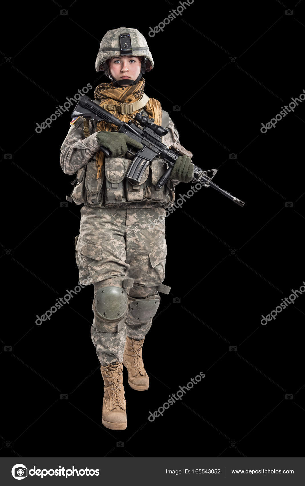 Mulher Soldado Do Exercito Dos Eua Com Rifle Stock Photo C Maximapryatin 165543052