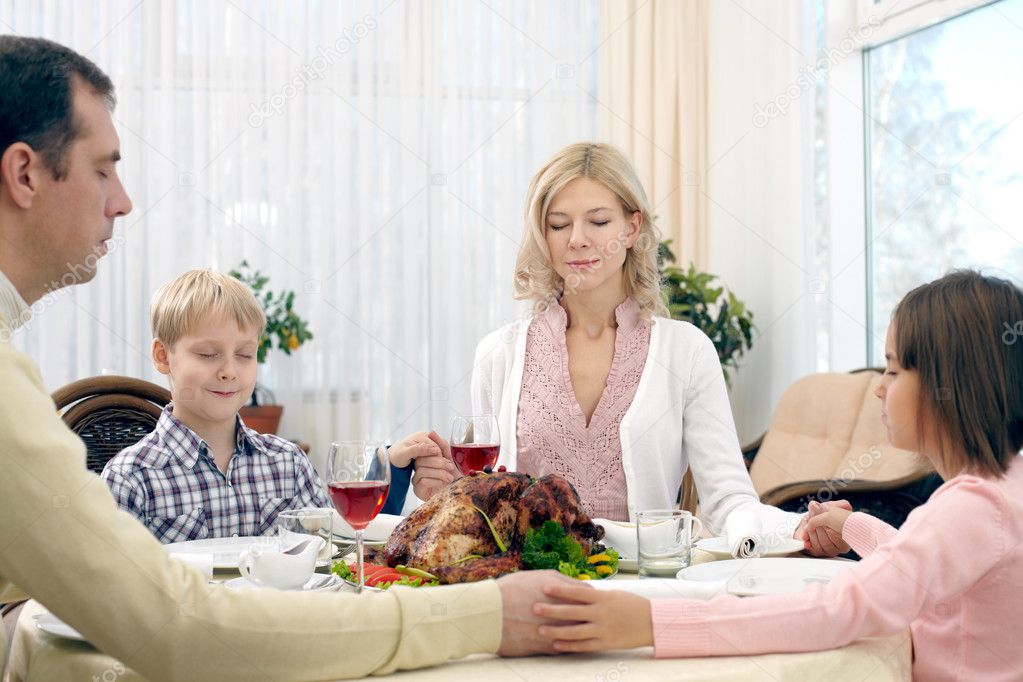 Familia Rezando Antes De Comer En La Cena De Navidad Imagen De Archivo Imagen De Comer Cena 158667079