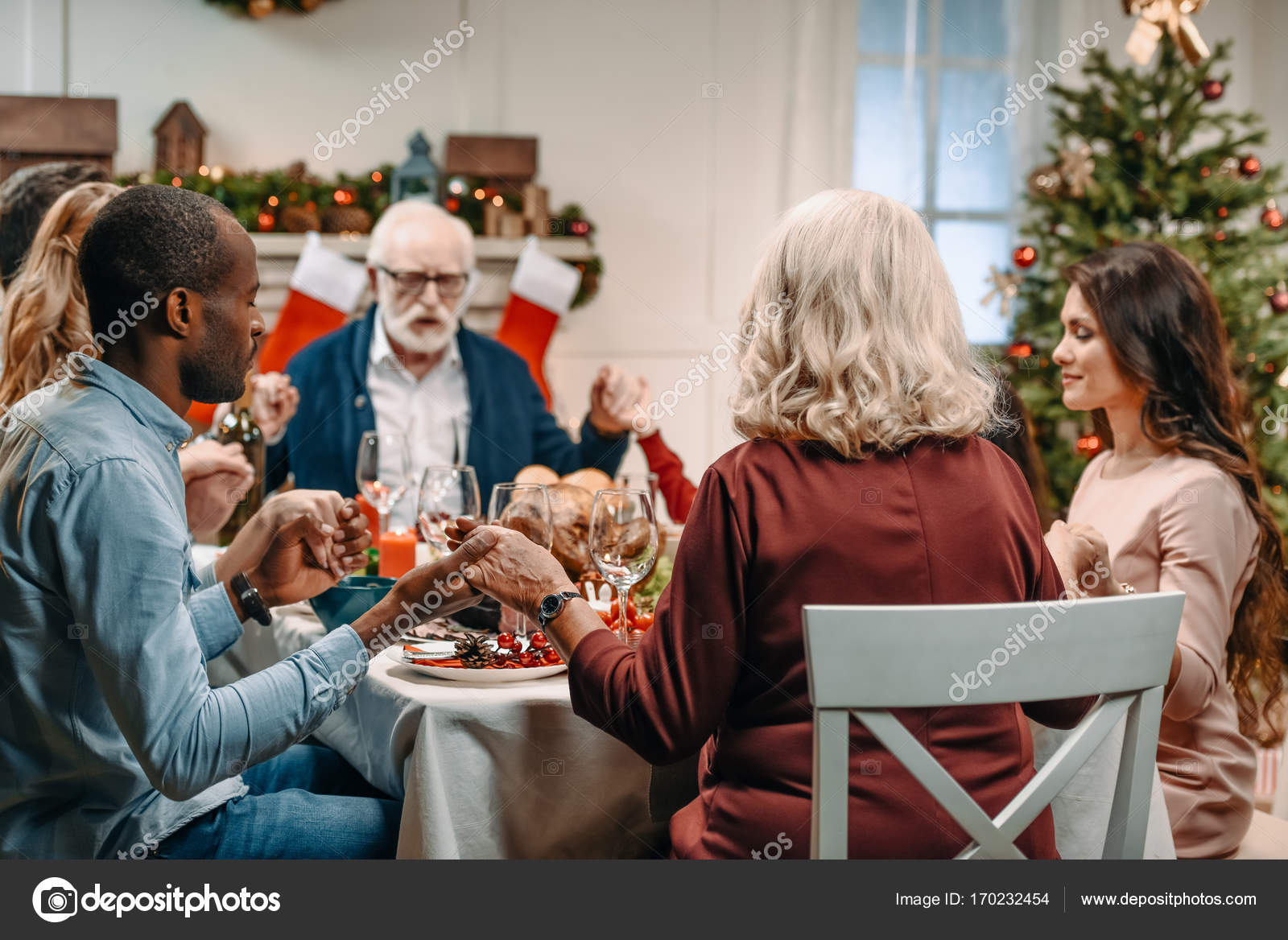 Familia Rezando Antes De Comer En La Cena De Navidad Foto De Archivo Imagen De Cena Navidad 158341772