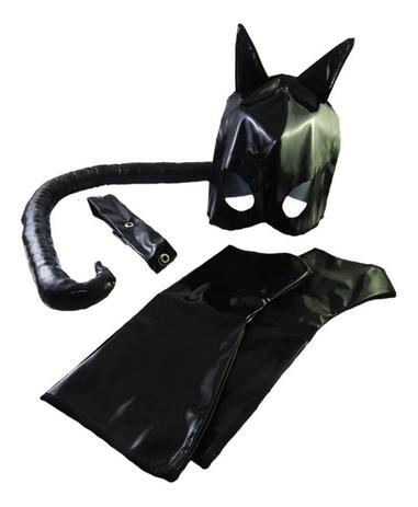 Fantasia Macacao De Vinil Mulher Gato Com Mascara Le Lingerie