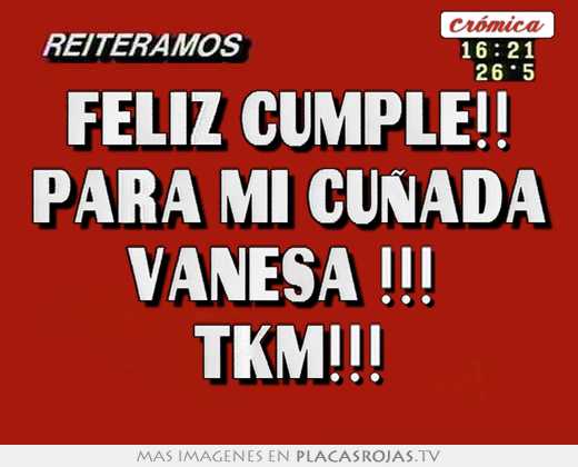 Feliz Cumple Para Mi Cunada Vanesa Tkm Placas Rojas Tv