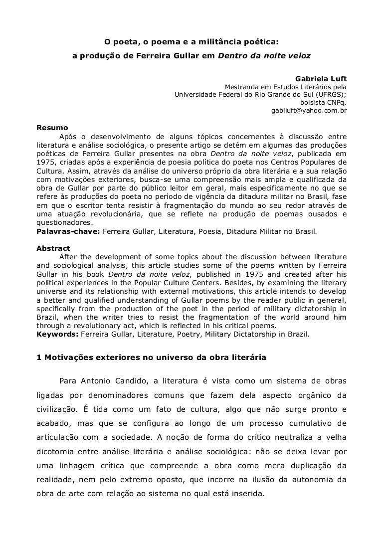 Templo Cultural Delfos Ferreira Gullar Entre O Lirico E O Social