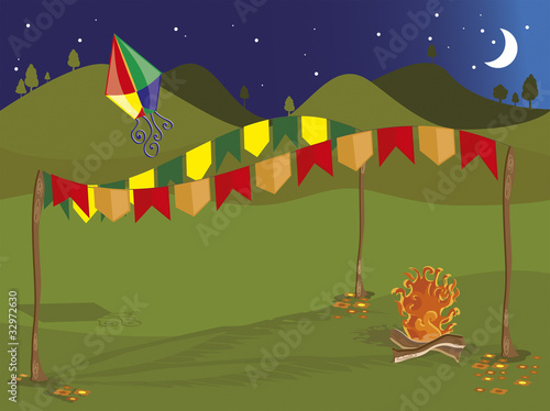 Free Vector Flat Design Festa Junina Wallpaper With Campfire