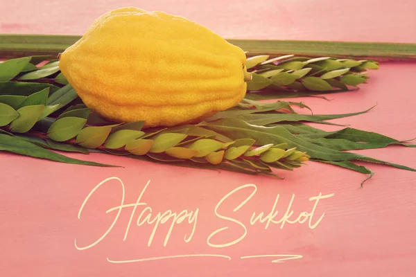 Festa Judaica Sukkot Simbolos Tradicionais Quatro Especies Etrog Lulav Hadas Stock Photo C Tomert 209567736