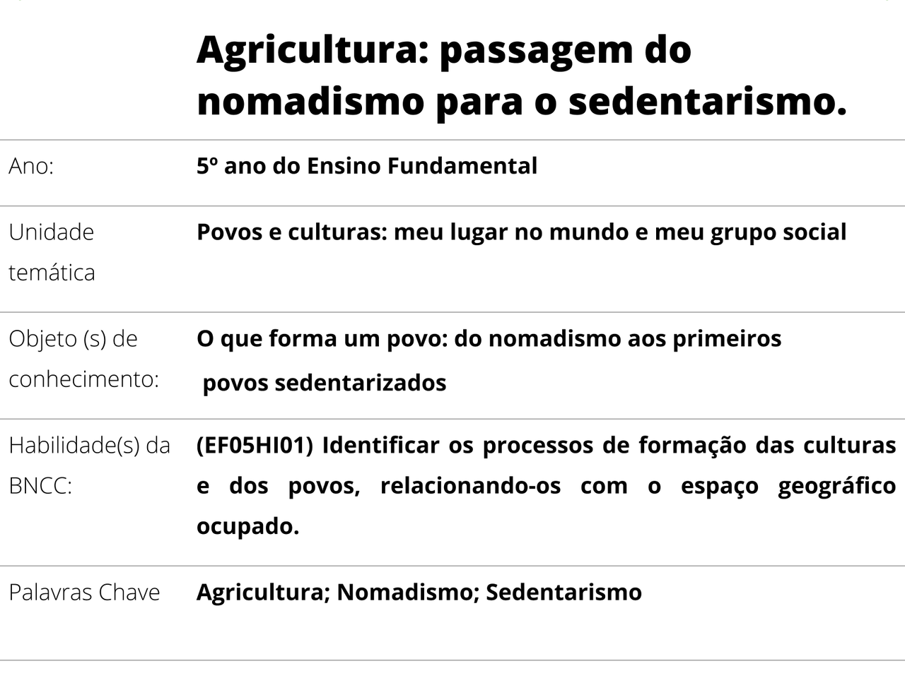 Plano De Aula 5º Ano Historia Agricultura Passagem Do Nomadismo Para O Sedentarismo