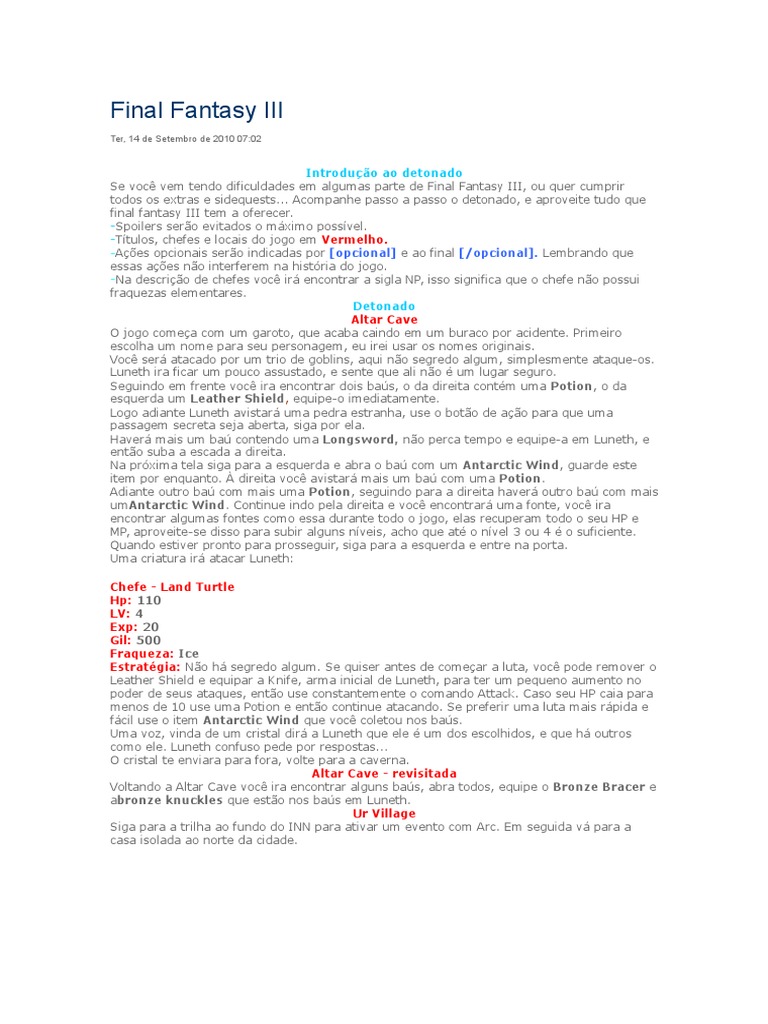 Detonado Final Fantasy 5 Baixar Docx De Docero Com Br