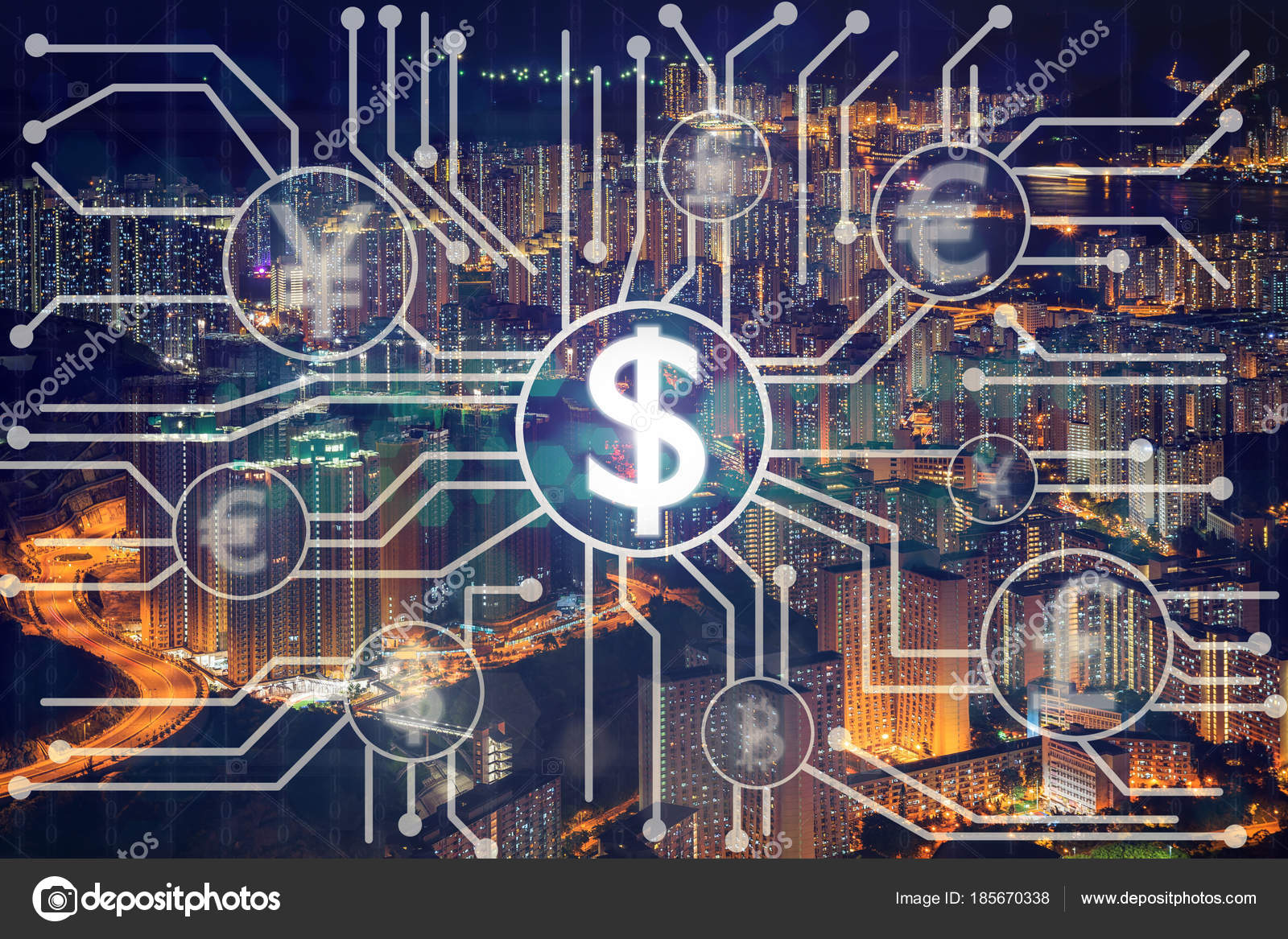 Financial Technology Fintech Innovation Technology Virtual Screen Background Aerial View Stock Photo Image By C Tzido 185670338