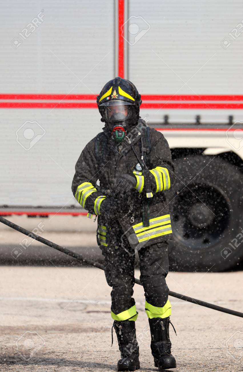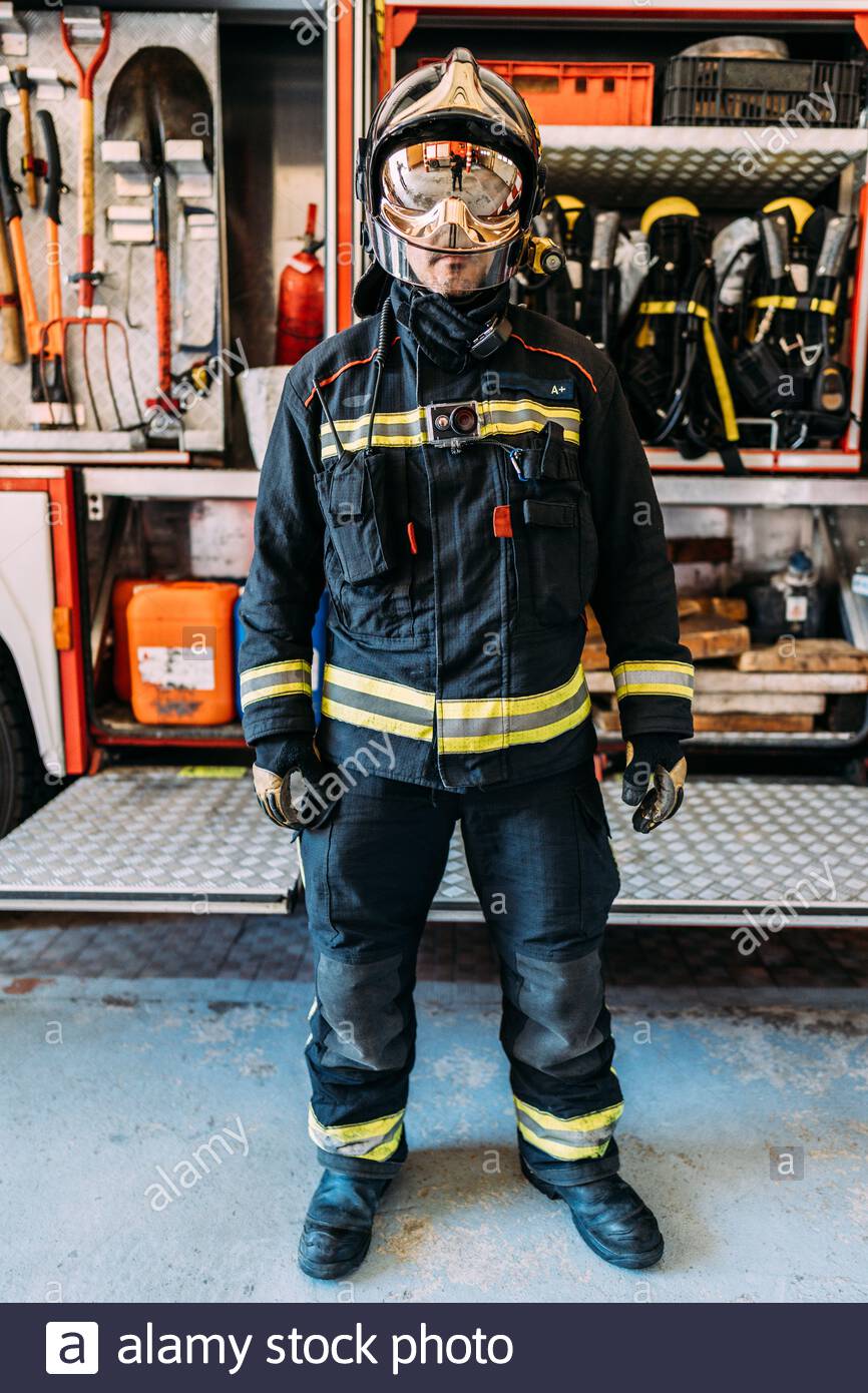 Firefighter With Helmet And Uniform At Fire Department Stock Photo Picture And Royalty Free Image Image 124666159