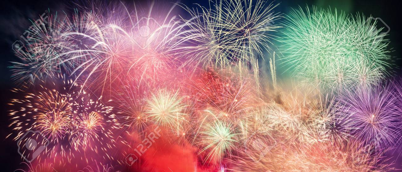 Colorful Firework Celebration On Dark Night Sky Background Beautiful Stock Photo Picture And Royalty Free Image Image 65590695