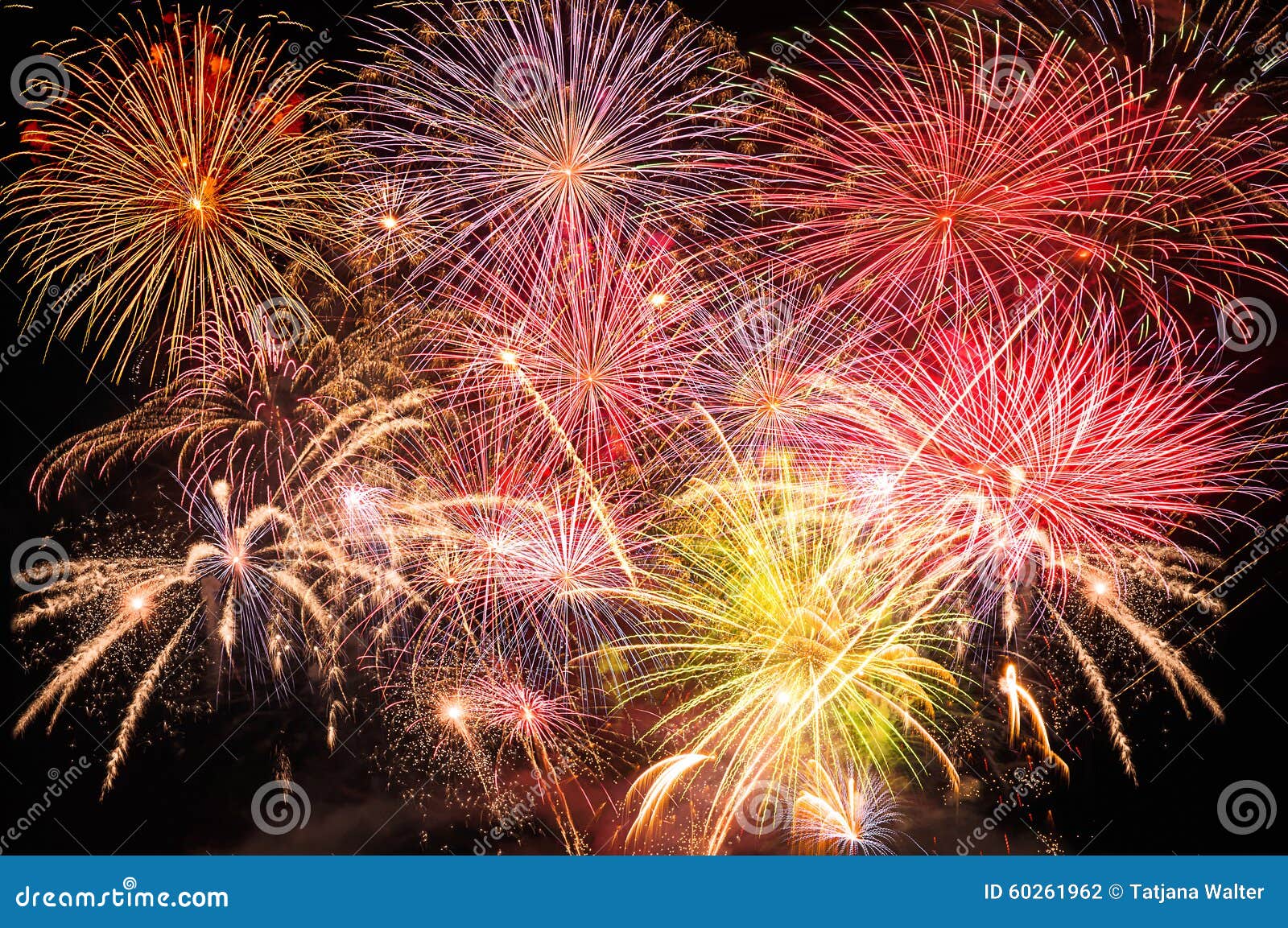 Spectacular Fireworks Show Light Up The Sky New Year Celebration Stock Photo Picture And Royalty Free Image Image 64702975