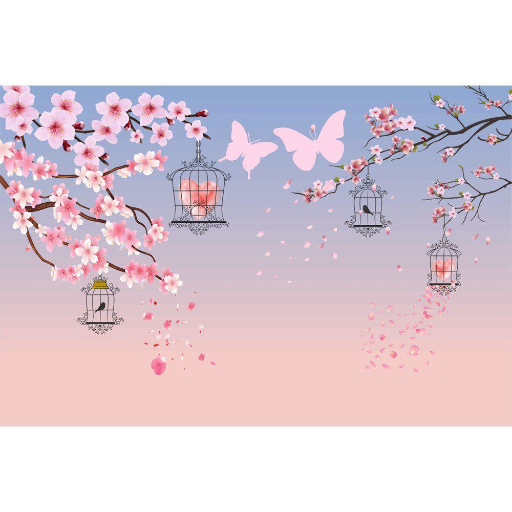 Painel Festa Em Casa Flores De Cerejeira E Borboletas 100x060cm Fabrika De Festa Painel De Festas Magazine Luiza