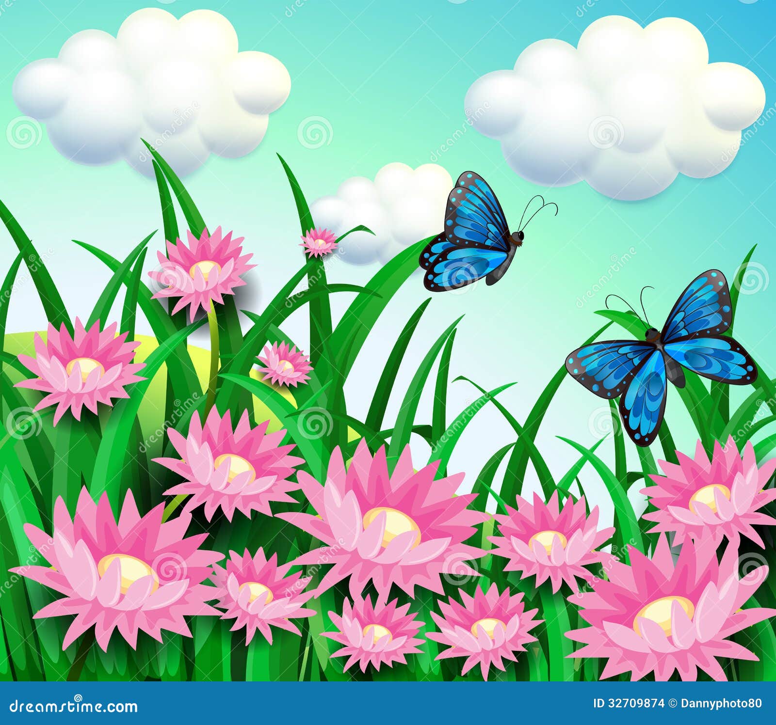 Borboletas No Jardim Com Flores Cor De Rosa Ilustracao Do Vetor Ilustracao De Flores Rosa 32709874