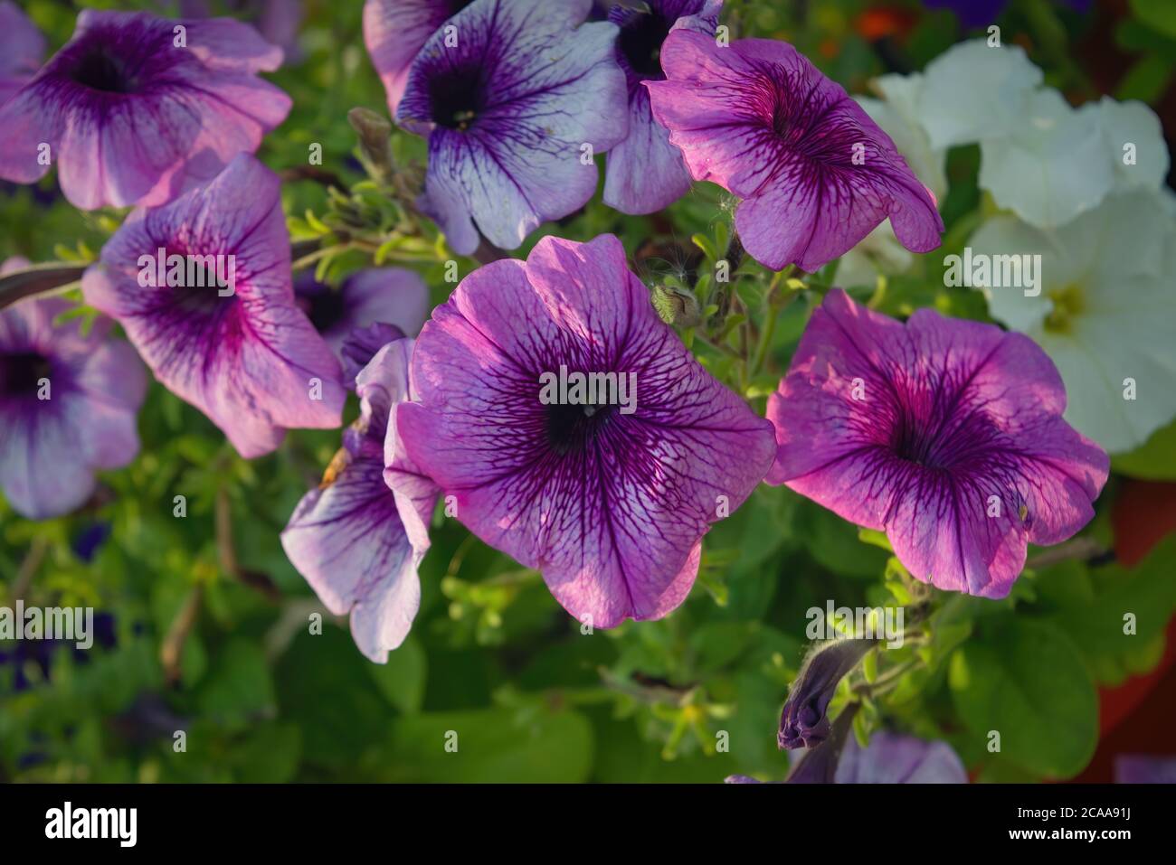 Huerto Con Petunias Purpura Imagen Llena De Colorido La Petunia Petunia Hybrida Flores Fotografia De Stock Alamy