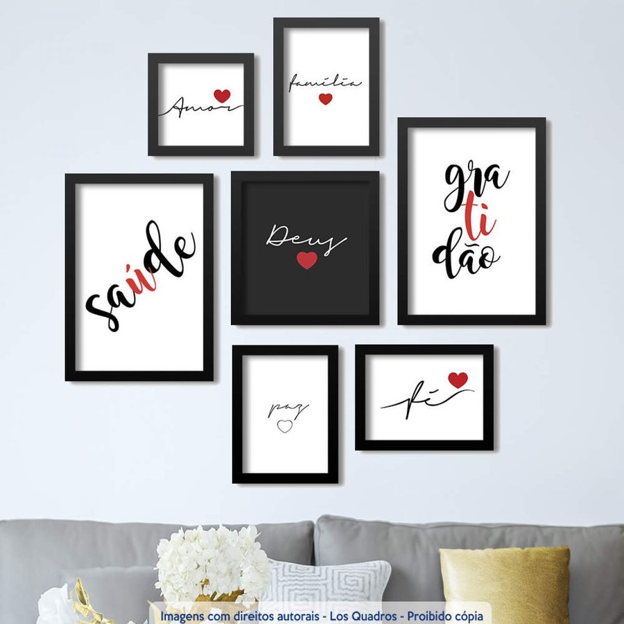 Conjunto 7 Quadros Decorativos Frases Fe Saude E Gratidao Los Quadros Madeiramadeira