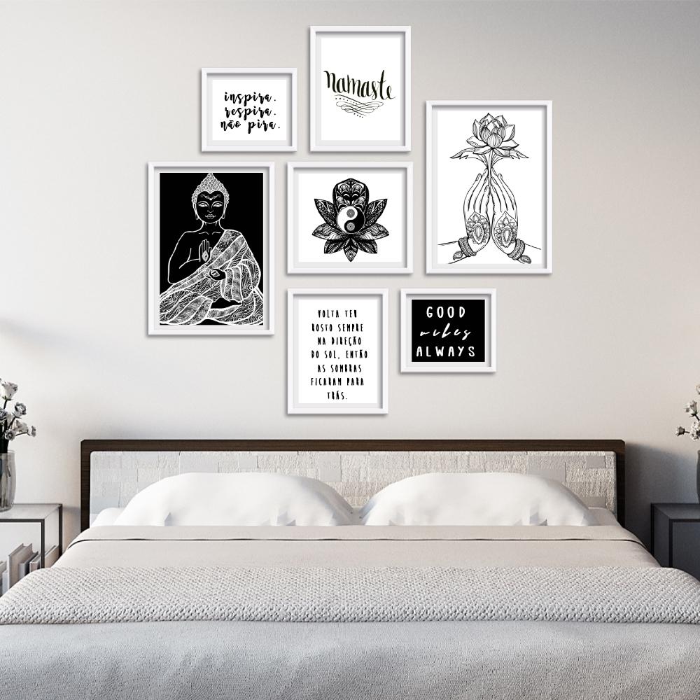 Conjunto Kit 7 Quadros Buda Good Vibes Com Frases Moldura Branca Oppen House Quadros Decorativos Pote Magazine Luiza