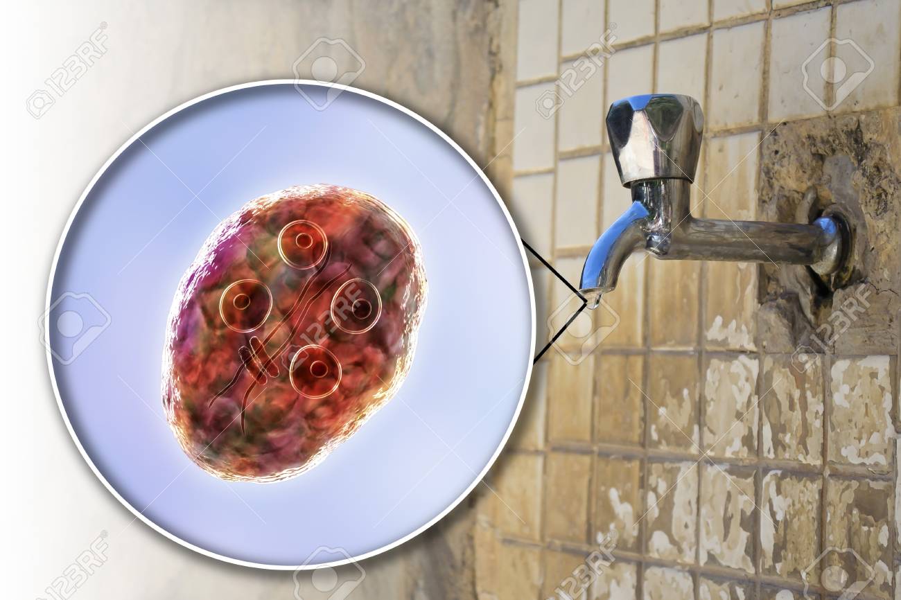 Safety Of Drinking Water Concept 3d Illustration Showing Cysts Of Giardia Intestinalis Protozoan The Causative Agent Of Giardiasis And Diarrhea Contaminating Drinking Water Foto Royalty Free Gravuras Imagens E Banco De Fotografias