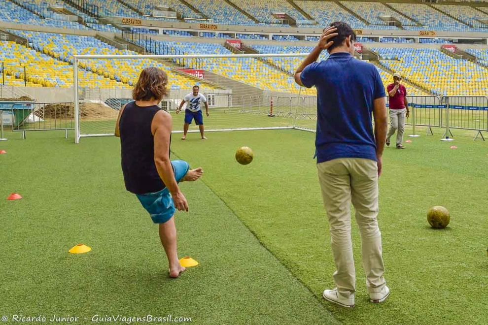 Imagem De Pessoas No Gramado Do Maracana Chutando Bola No Gol