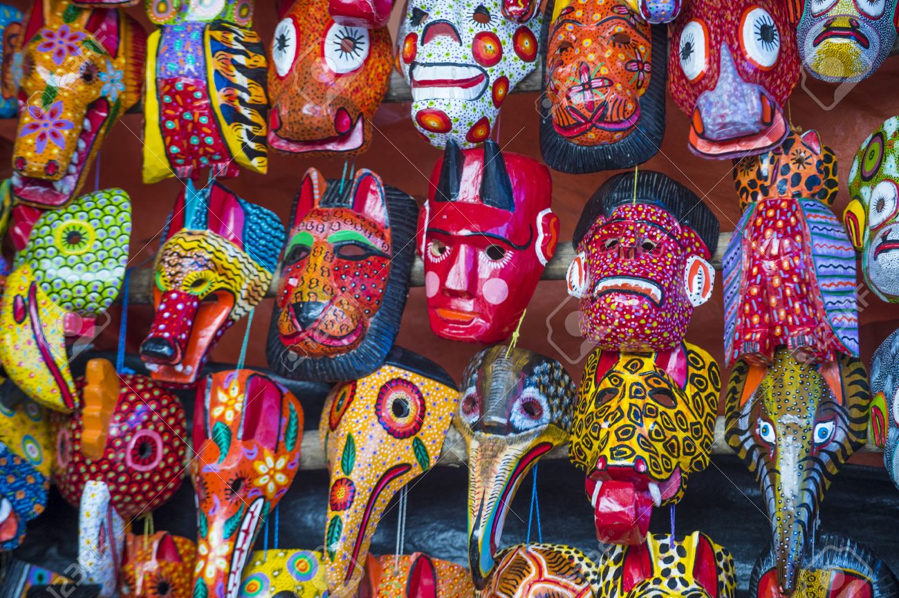 Mayan Wooden Masks For Sale At Chichicastenango Market In Guatemala Banco De Imagens Royalty Free Ilustracoes Imagens E Banco De Imagens Image 44160164