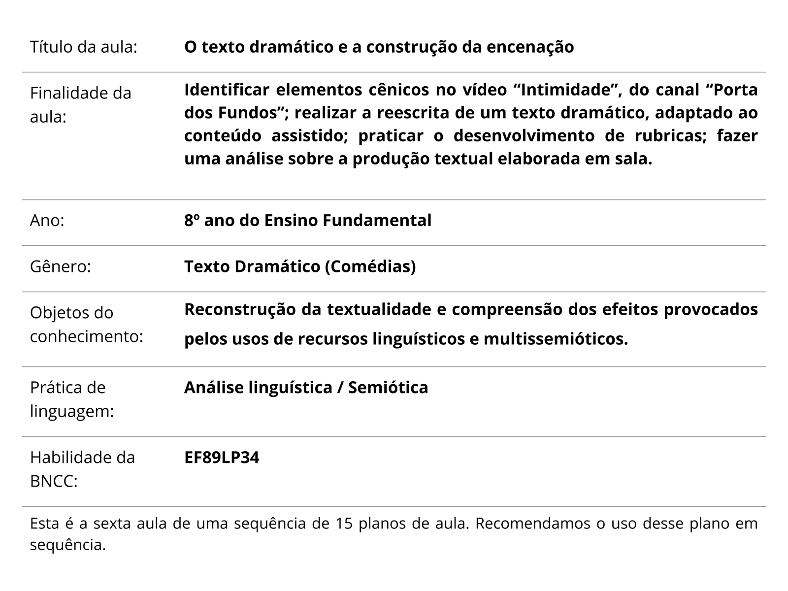 Plano De Aula 8º Ano Lingua Portuguesa O Texto Dramatico E A Construcao Da Encenacao