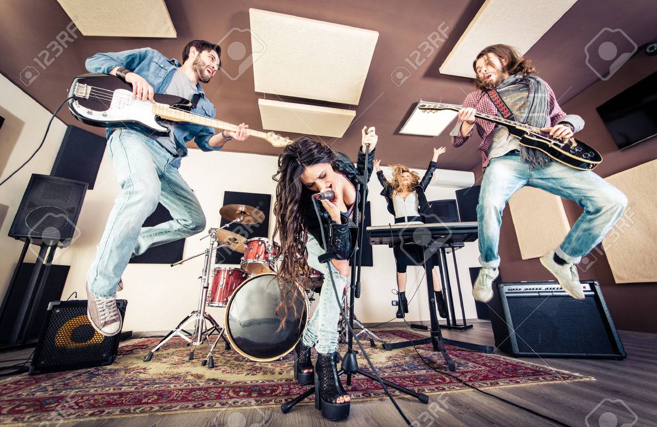 Rock Band Playing Hard Rock In The Studio Concept About Entertainment And Music Banco De Imagens Royalty Free Ilustracoes Imagens E Banco De Imagens Image 55652956