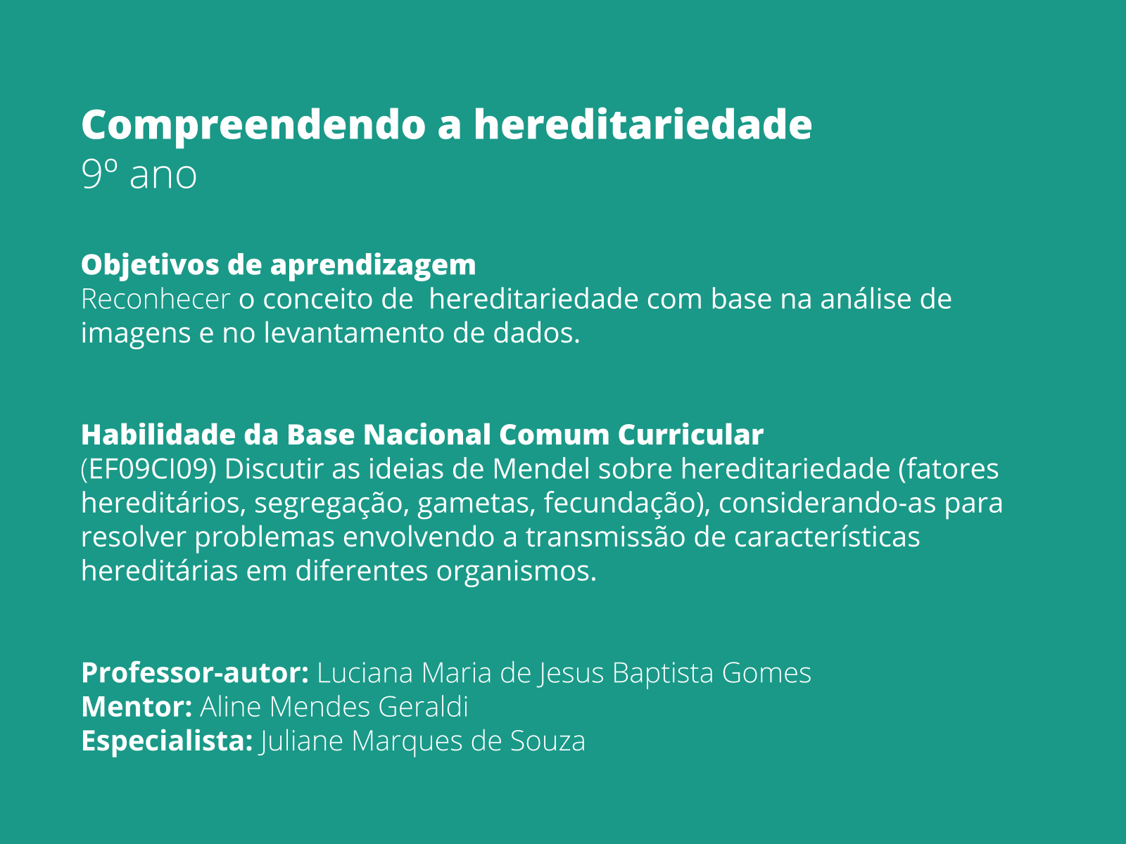 Plano De Aula 9º Ano Ciencias Compreensao Da Hereditariedade