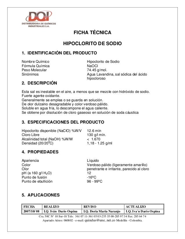 Hipoclorito De Sodio Doc Sustancias Quimicas Quimica